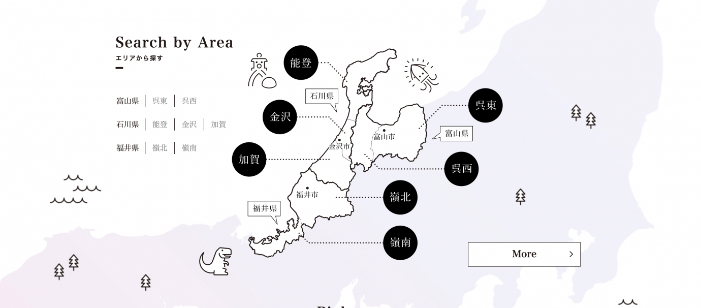「くるま旅」「レトロ旅」「グルメ旅」「おとめ旅」「おやこ旅」「きまま旅」「おとな旅」などの旅のテーマや季節を切り口に、まだ体験したことのない新しい北陸旅への入り口をご紹介しています。