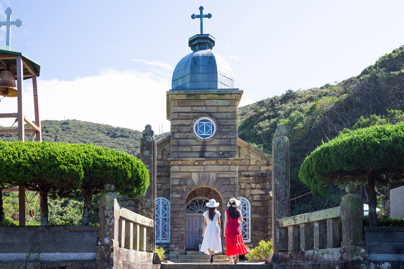 67の島々からなる新上五島町は、2018年に「長崎と天草地方の潜伏キリシタン関連遺産」が世界文化遺産に登録され、構成資産内にある西日本で唯一の石造建設の教会「頭ヶ島天主堂」をはじめとした個性豊かな教会が写真映えスポットとして人気を集めています。