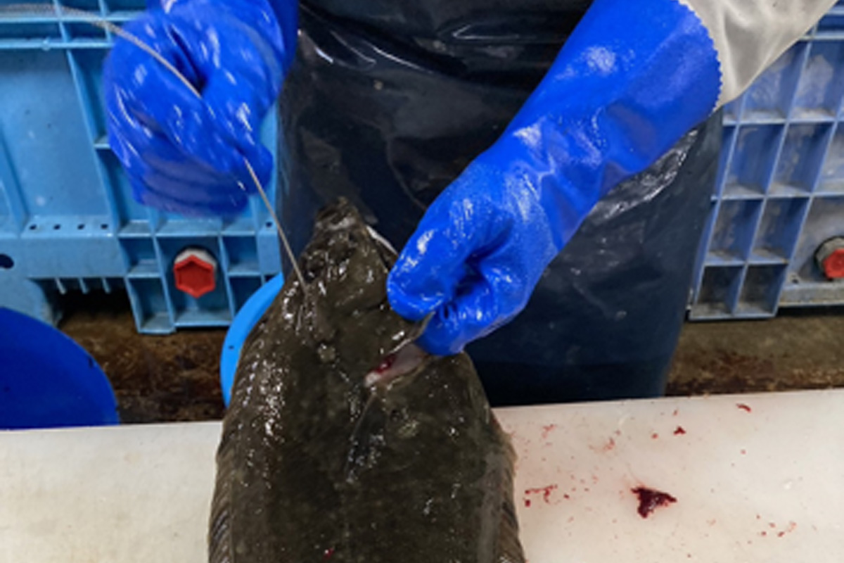 手作業で脊髄を潰し、神経締めをします