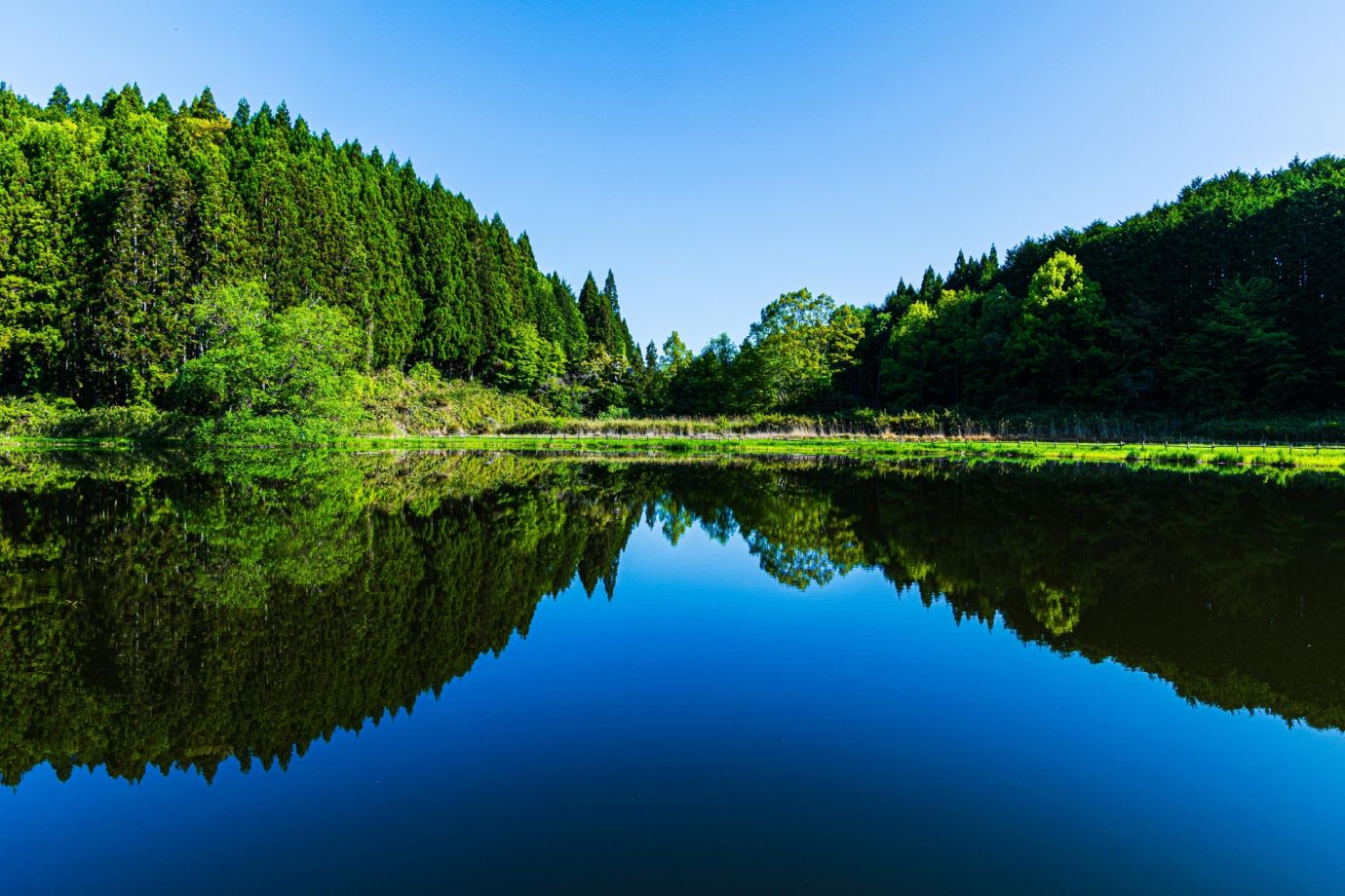 撮影スポット例:初夏 鏡のような水面の龍王ヶ淵