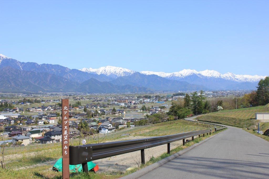 東京スカイツリーと同じ高さ、634mの位置に広がる「あづみ野池田クラフトパーク」からは北アルプスのパノラマを一望でき、この景色に魅了されて移住される方も。