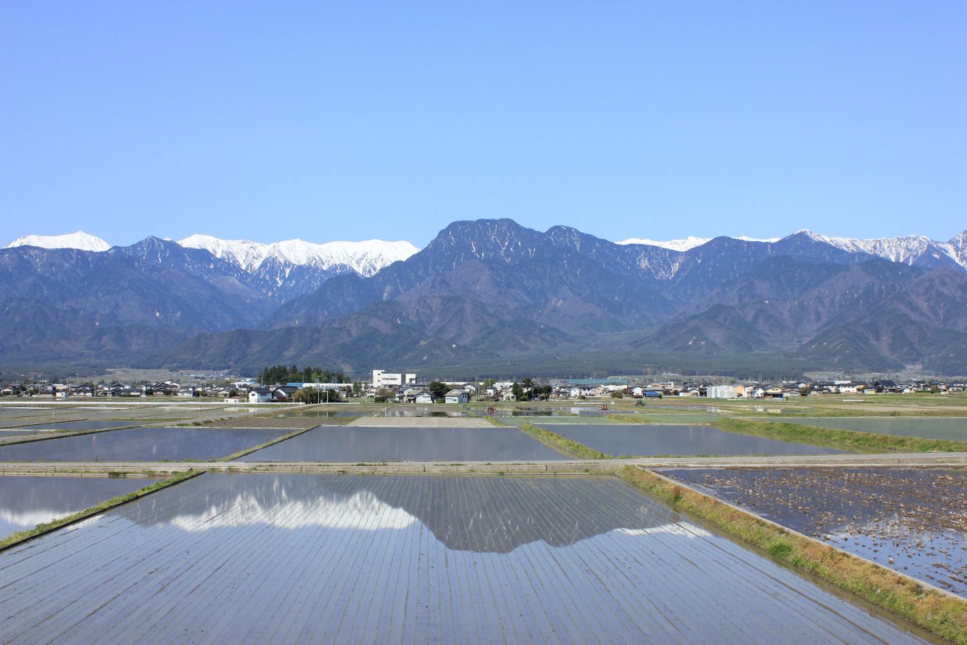長野県 池田町 は白馬村と松本市の中間に位置し、西側には北アルプス・東側には里山が広がる大自然を身近に感じられるエリアです。春の山桜や夏の田園風景、秋の「七色大カエデ」の紅葉や冬の雪化粧をした北アルプスなど、四季折々の風景を楽しめます。