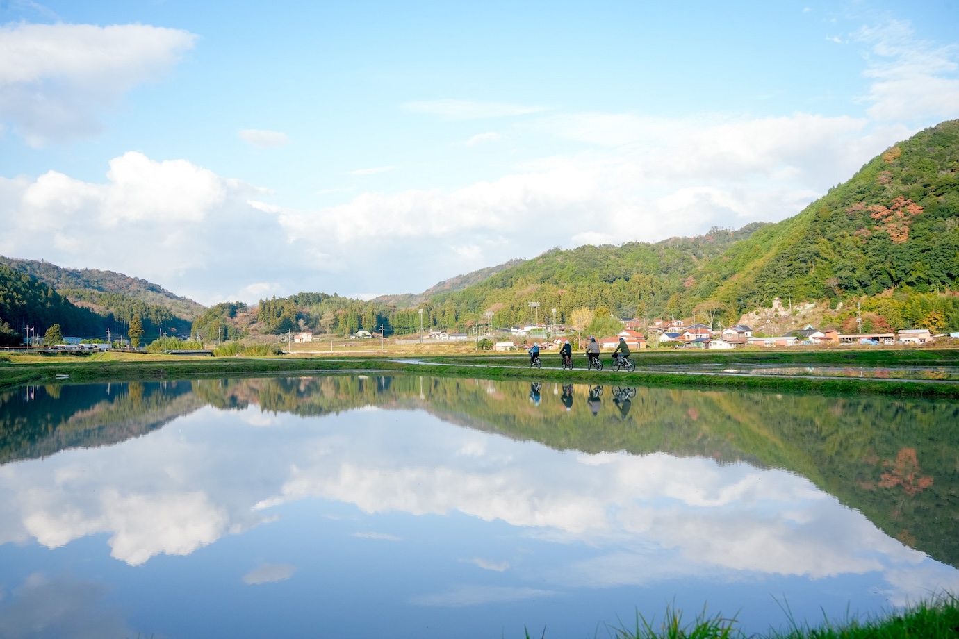 ツアーは毎回が特別な体験。前回は田んぼの水面が鏡のように