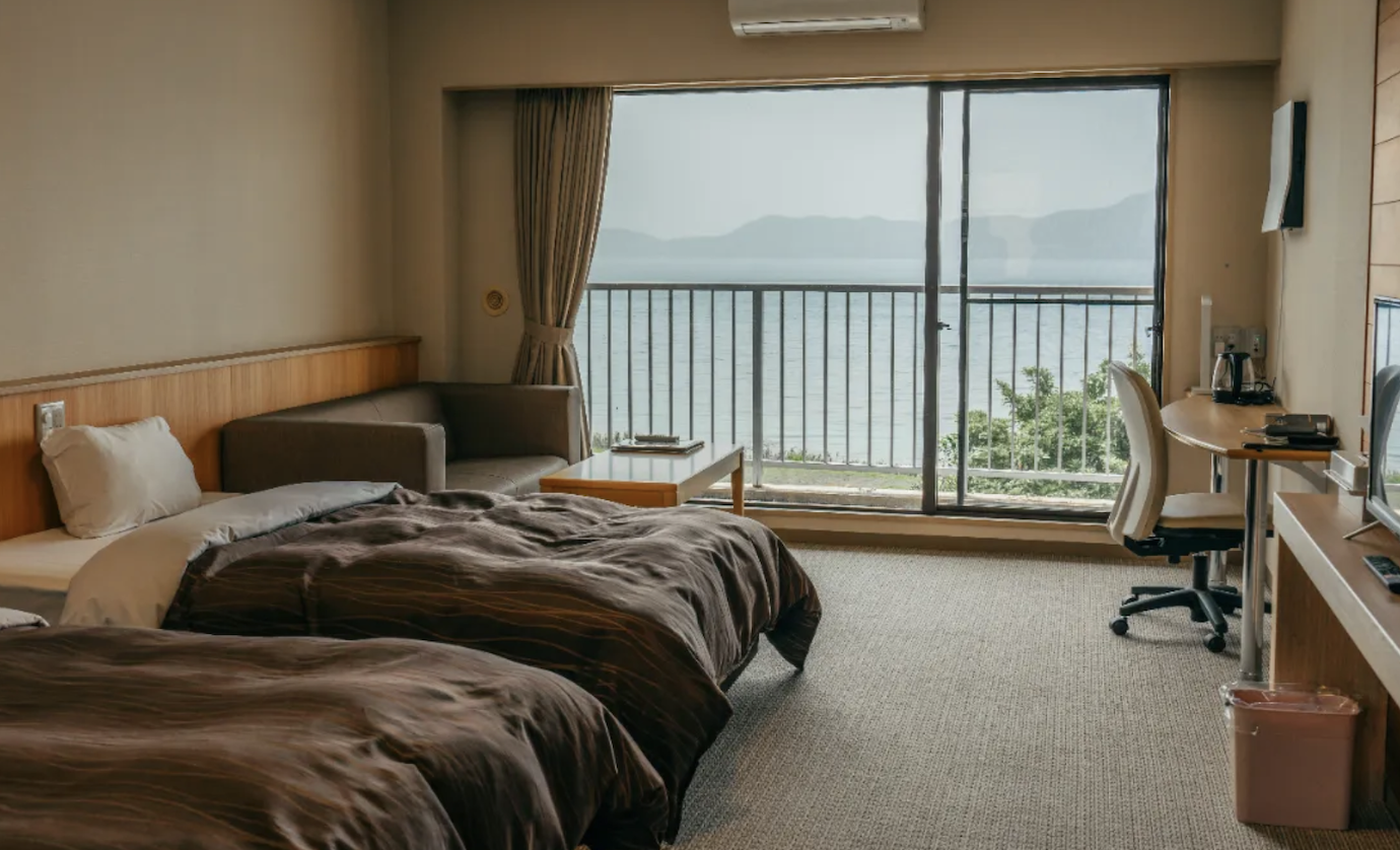 全室オーシャンビューの『リゾ隠岐ロザージュ』は、西ノ島の透明で美しい海をゆったりと味わえる空間です。