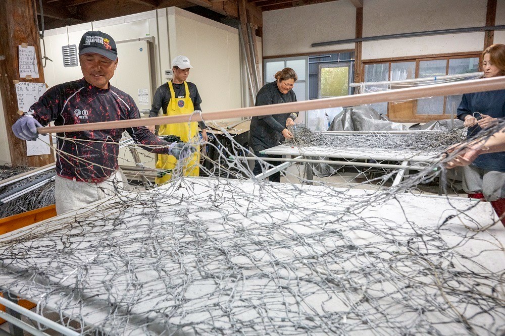 9月からはじまる海上作業に向けた「海苔網づくり」作業