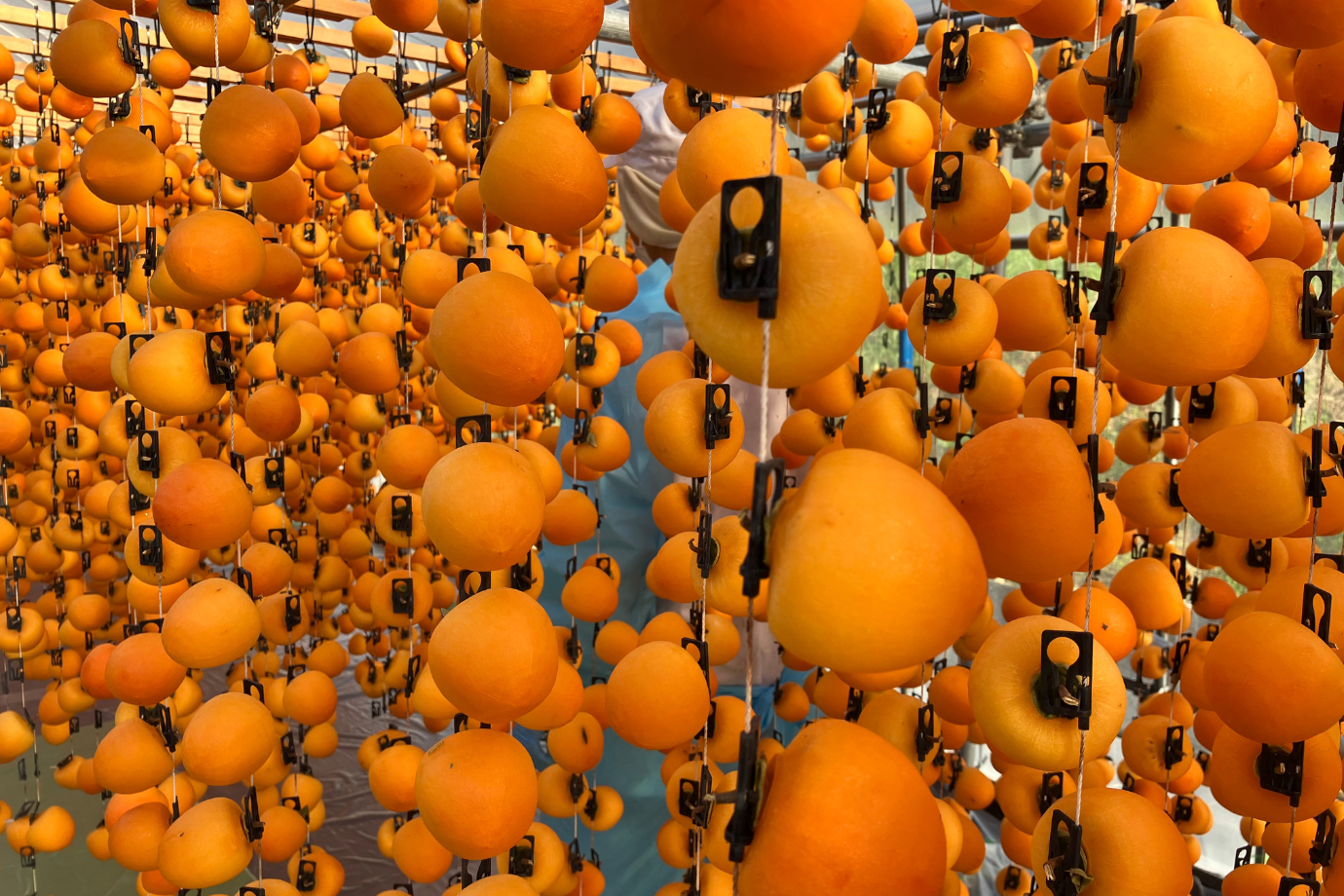あなたの手で収穫した柿が、美しい飴色の干し柿になります! 12月頃には、自分たちが採った柿が、製品になった市田柿(干し柿)をプレゼントしますので、ぜひご賞味ください◎