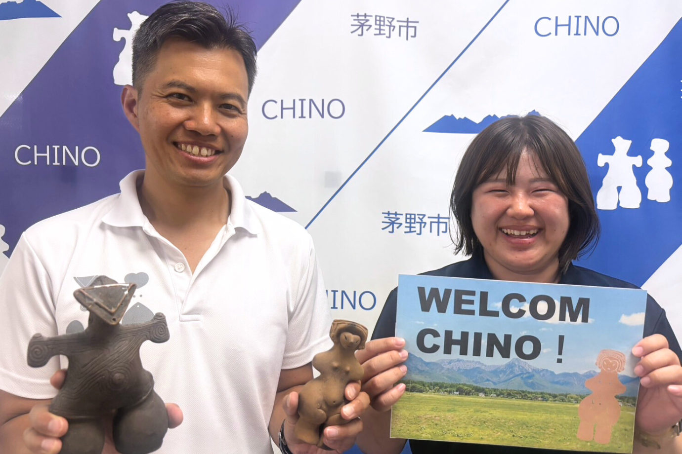 茅野市で移住・交流推進係を担当する田中さん(左)と五味さん(右)