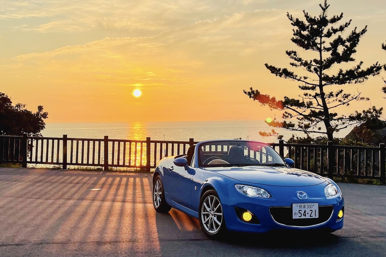 - 天草エアラインの飛行機『みぞか号』と同じカラーに特別塗装した「イルカのオープンカー・レンタカー」