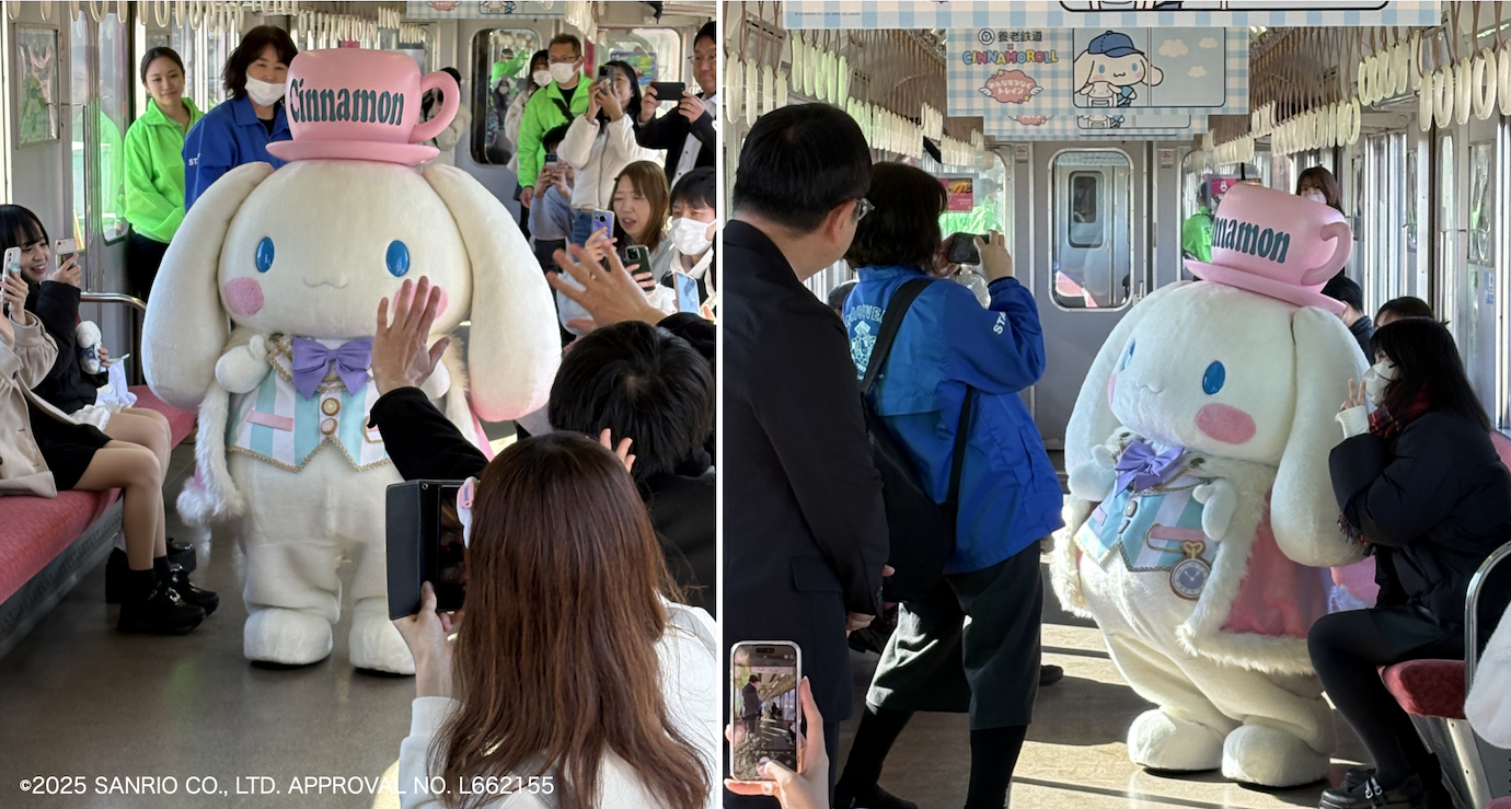 シナモロール列車でツーショット撮影 & 限定弁当を味わう特別体験!