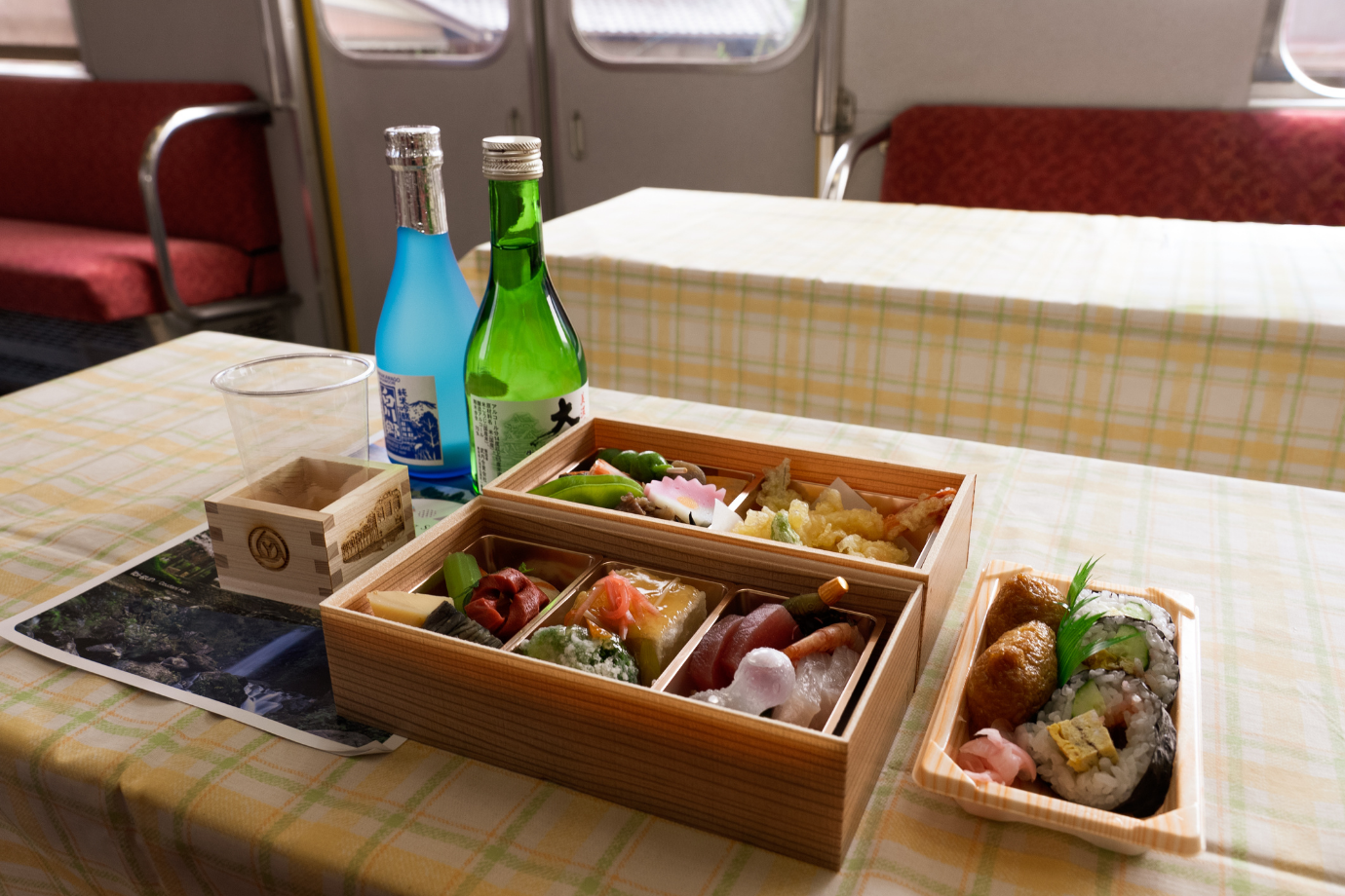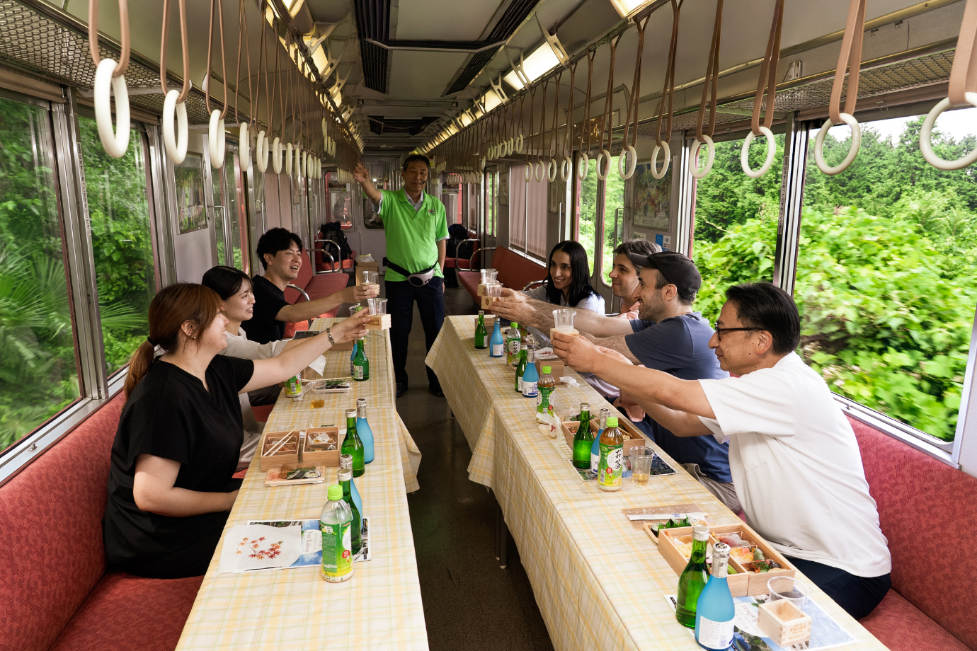 ・地酒とランチを楽しみながら、車窓からの美しい景色とガイドの楽しい解説をお楽しみください