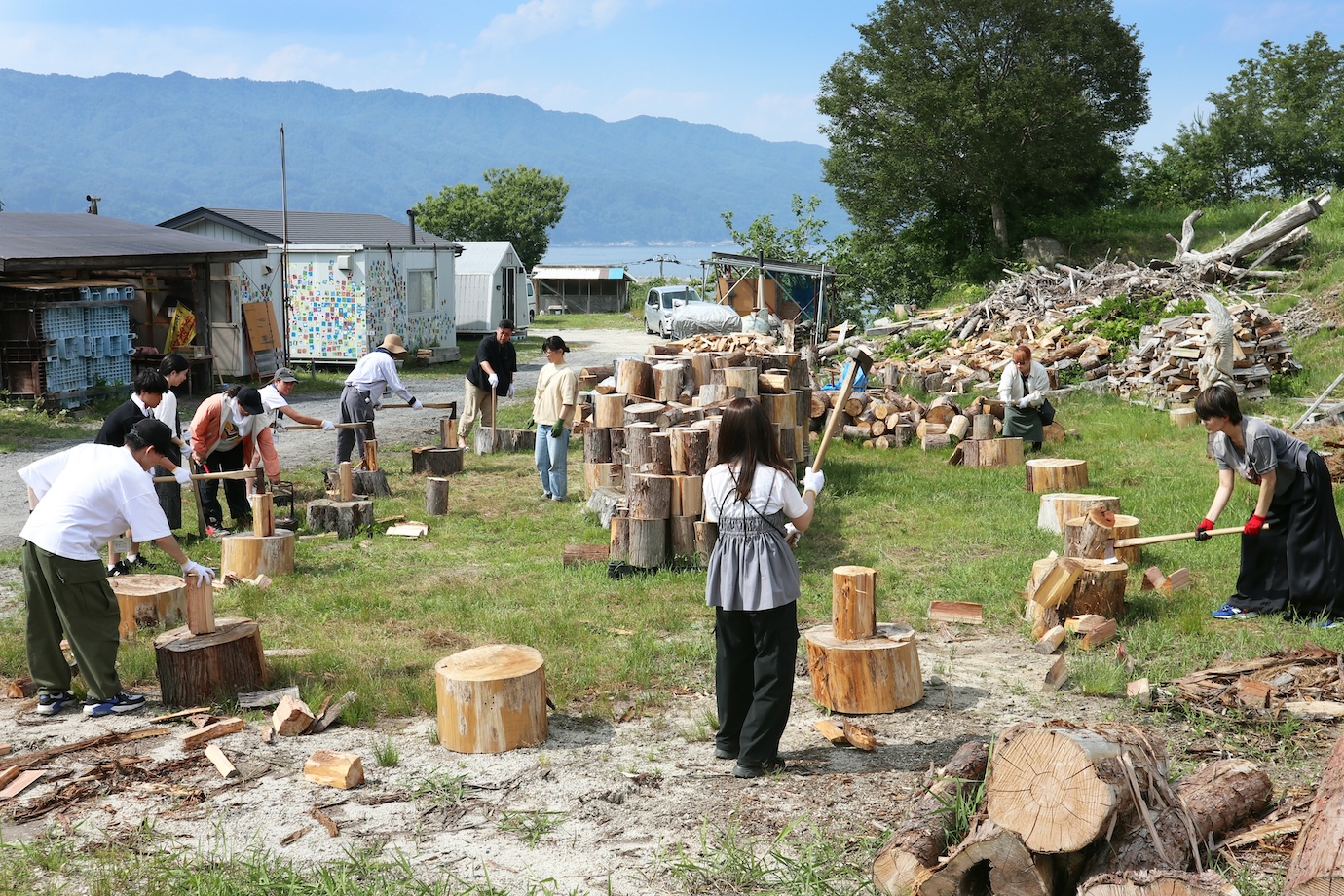 ・海の見える丘で、薪割り体験など自然を感じるアクティビティ
