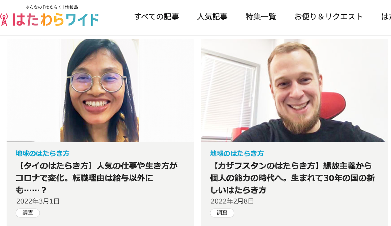 『はたわらワイド』の人気連載企画「地球のはたらき方」では、海外の「はたらく人」にお話を伺い、各国のはたらき方やモチベーションの保ち方などをインタビューしています。